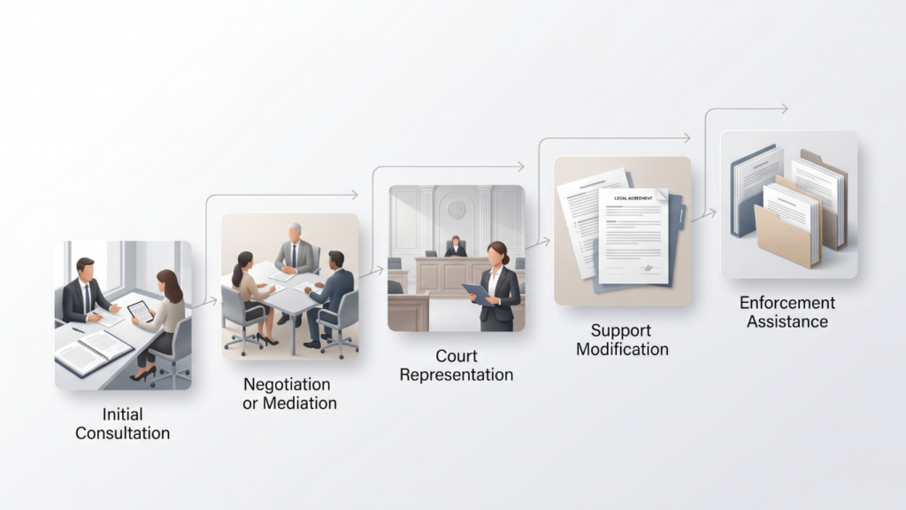 • Support Modifications – Updating existing orders to reflect changed circumstances.